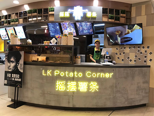 LK Potato Corner于美國、澳洲、泰國、印尼、巴拿馬等共開900多家分店,中國的第一家門店選址在杭州湖濱銀泰百貨,該店吸排煙設(shè)備選用的就是多環(huán)牌無管式油煙空氣凈化機,而且后續(xù)各個加盟連鎖店將標配”多環(huán)“無煙管油煙空氣凈化機。