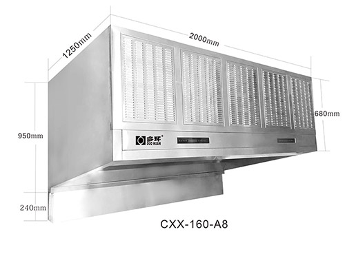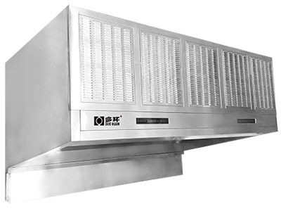 特點: 上海多環大型中餐餐飲用無煙管內循環油煙凈化機,無需外裝煙道的油煙空氣凈化機, 室外零排放, 室內無污染,設有冷凝降溫裝置